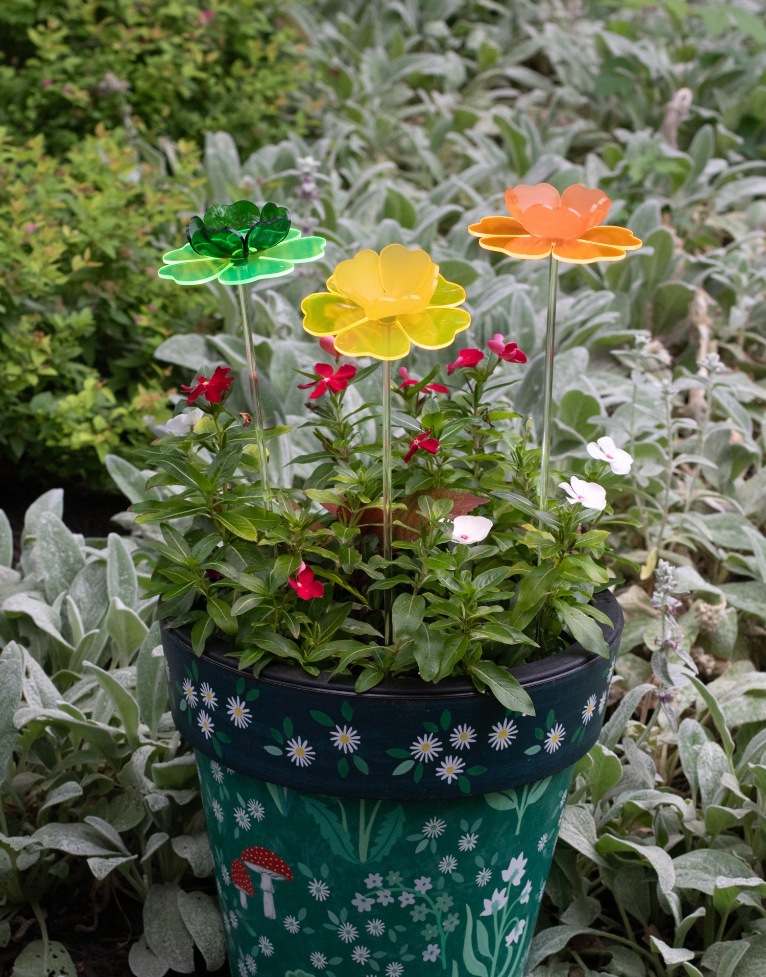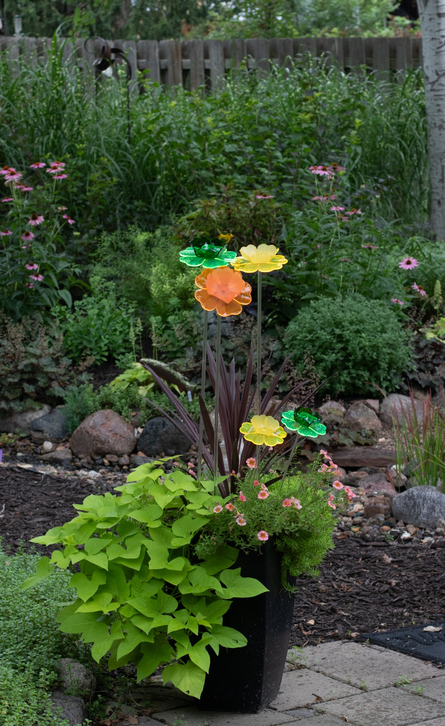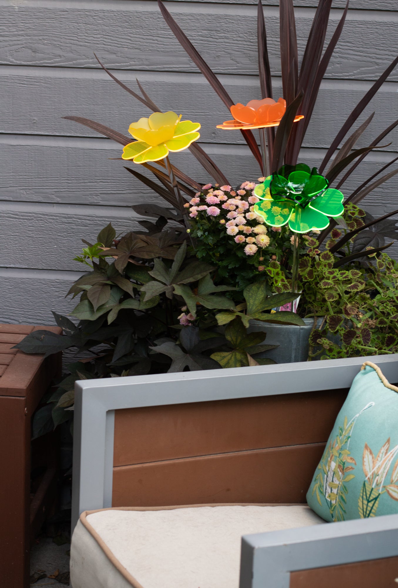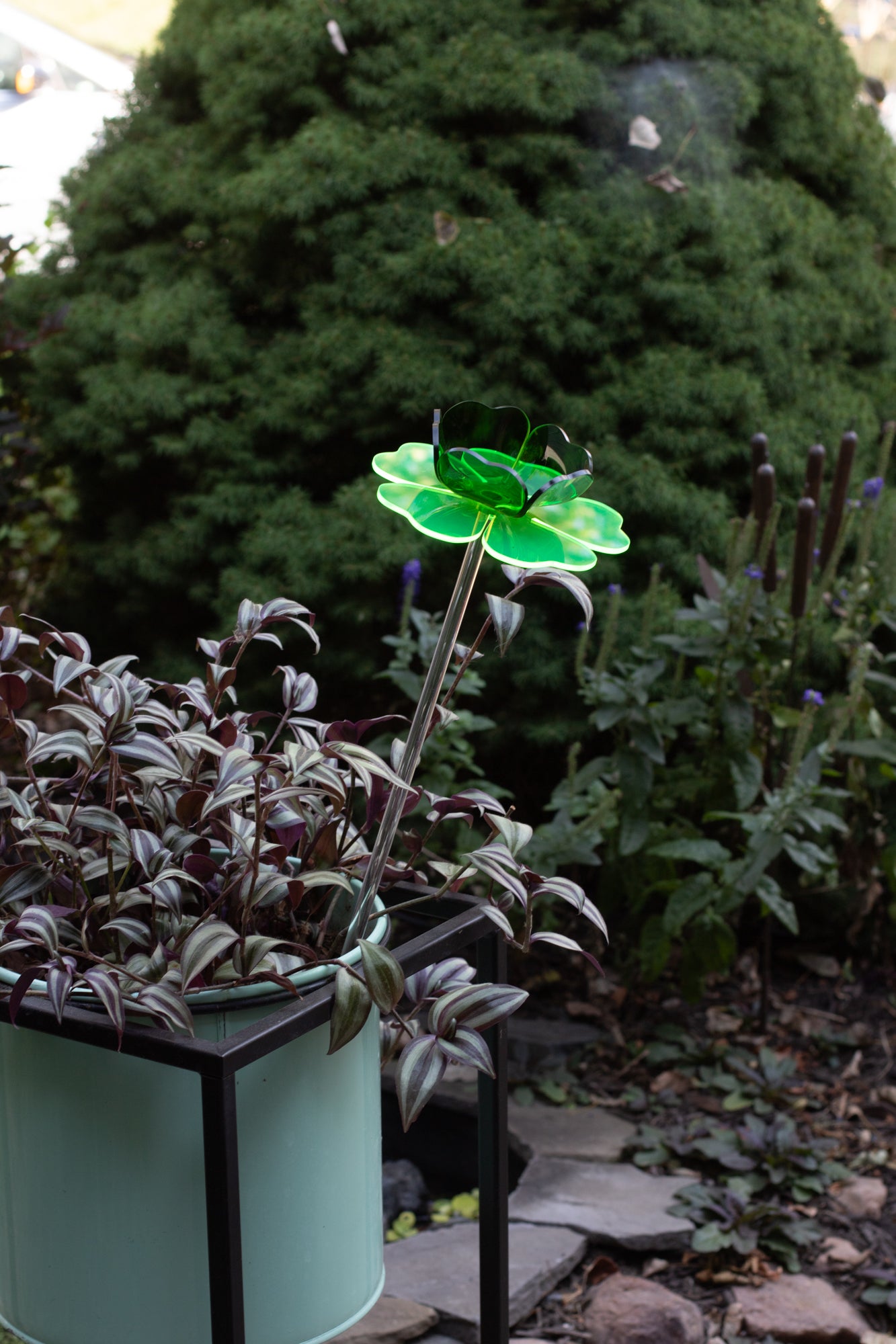 A clear acrylic stem allows the flower to sway safely in the wind.